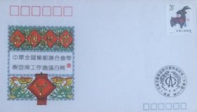 中华全国集邮联合会第五次代表大会开幕纪念封,贴庚辰年龙票,盖2000年7月18日北京人民大会堂日戳和3枚纪戳,中华全国集邮联合发行。编号:JYL14(2-1)。