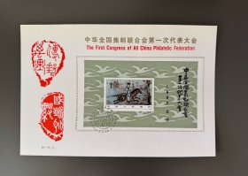 1982年J85 M“中华全国集邮联合会第一次代表大会”小型张邮卡1枚,品相详见图片,右侧有一微黄点。实物拍摄,按图发货,请看好后再拍。