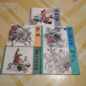 【四世英豪】——四世英豪(杨家将四代英雄:杨继业、杨延昭、杨宗保、杨文广),李学荣.傅鲁沛作,2开四屏年画.2张一套,彩色精印。上海美术人民出版社出版(1986年4月)编号3845