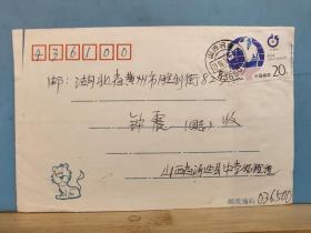 FP20-0902 1996年 美术(小狮子) 体育 实寄封 贴1995-7 (2-1)第43届世乒赛 20分 票 河曲实寄黄州