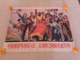 1976年5月 人民体育出版社第1版第1次印 新华书店北京发行 沈尧伊作《中国和世界各国人民、运动员之间的友谊万岁》宣传画一张 HXTX332407