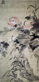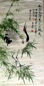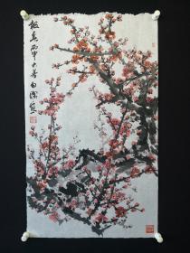 1980年话剧《报春花》四场背景粉彩手绘图案小样一张(大家手绘,图案非常精致,色彩明亮,绘画功底可见功夫,题材时代特征明显)标有文字向白洁学习开展万米无次布运动的字样