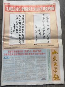 山东大学报2001年10月15日,百年校庆特刊68版全,邵华泽、季羡林、任继愈、王选、厉以宁、许智宏、冯其庸、张岱年、赵俪生、周而复等山东大学校友和著名人士题词祝贺。
