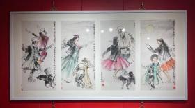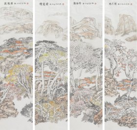 【终身保真字画,得自画家本人】吕海洋 68X34X4四条屏展览作品,软片不带框 中国美术家协会会员,中国检察官文联书画协会理事,中国水墨画院专职画家,吴冠中艺术馆特聘画家,青岛科技大学艺术学院艺术硕士研究生客座指导教师。毕业于山东大学法律专业,结业于中国美院中国画专业,先后从事过教师、新闻记者、检察官等工作。在由中国美协及中国国家画院主办的全国性画展中曾4次获奖,另有12次入选。