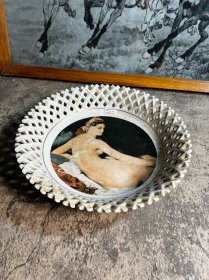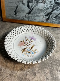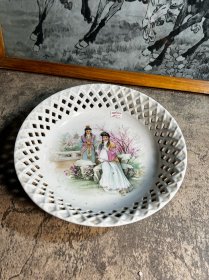 80年代,25厘米秦皇岛瓷厂镂空果盘一只