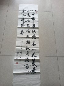 书画作品:毛泽东 《清平乐·六盘山》 天高云淡,望断南飞雁。不到长城非好汉,屈指行程二万。六盘山上高峰,红旗漫卷西风。今日长缨在手,何时缚住苍龙? 张世明的书法作品一幅售 有款有章 货号01290