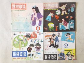 拼拼读读1—8(8册合售,彩色24开),绘画:陈永镇、毛用坤、张世明等,上海教育出版社1982、83一版多印(小学一年级第一、二学期上下;二年级第一、二学期上下)