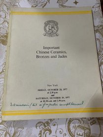 christies 纽约佳士得 1977年10月28日29日 重要中国陶瓷器、玉器青铜器拍卖图录 important chinese ceramics bronzes and jades