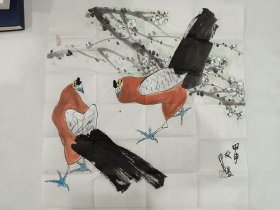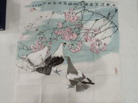 著名画家江文湛花鸟作品尺寸68cmx68cm软片!