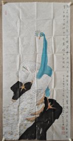 江文湛国画一幅 孔雀图 尺寸136x68厘米 保真