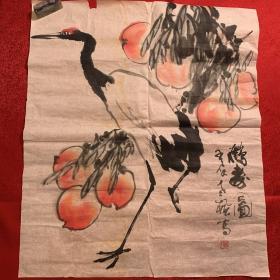 吉林省著名画家张德君(笔名老枫)福寿图一幅。