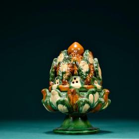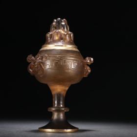 旧藏 老琉璃包金凤钮博山炉。规格:高24㎝宽11.5㎝重546g