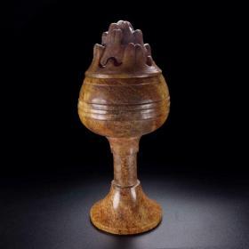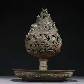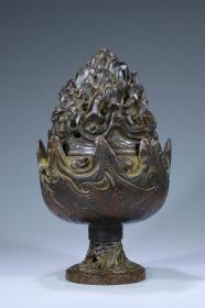 海外回流 青铜器博山炉带托摆件