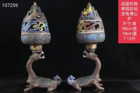 战国时期青铜彩绘龙龟博山炉 尺寸:高38cm宽18cm重7.13斤