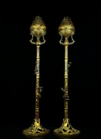 战国青铜——错金博山炉一对—— 高:78厘米——宽:17厘米—— 共重:6.6公斤—— 5200