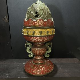 旧藏 老琉璃螭龙耳包金博山炉。