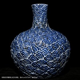 明青花浮雕博山纹天球瓶