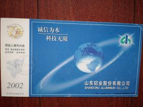 实寄明信片(原地封),2002年60分贺年有奖邮资明信片马,2003年5月10日淄博至吉林市铁合金中学,双戳清晰,淄博山东铝业公司广告,