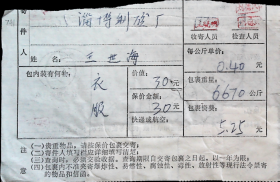 山东博山夏庄1993.1.8寄山东桓台陈庄1993.1.11(1993.1.12)邮政包裹单剪片,上海民居,江苏民居,东北民居,中国石窟艺术龙门石窟唐代力士