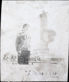 人物男青年在人民英雄纪念碑, 60年代老照片 来源博山