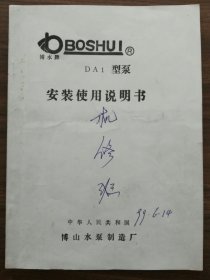 DA1型系列多级离心泵安装使用说明书
