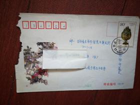 实寄封,淄博市博山区自来水公司公函封。博山至吉林市通江街铁合金中学,2003年1月8日红色机戳,贴普30保护家园60分
