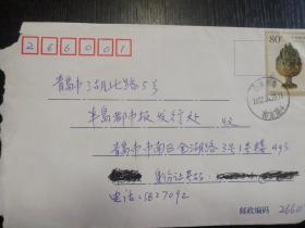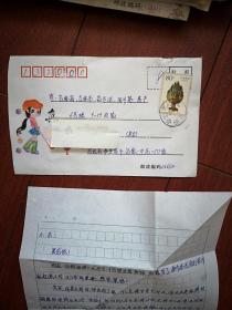 实寄封(内附信一封,亲姐弟,读高二的大姐写给外出打工的小弟),贴2000-21(4-3)T博山炉 ,秦皇岛昌黎一中至吉林市四川路,2000年12月4日,美术信封,真挚