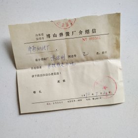 山东省博山市博山弹簧厂介绍信