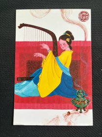 明信片:《仕女焚香抚琴图》 青烟自博山炉中袅袅升起,沉香幽微,暗染罗衣。仕女低眉,素手拂过琴弦,泛音清冷,似珠落玉盘。忽而弦断,余韵悬空,她怔然望向香灰,忆起旧年笑语:"此香如你。"烛影摇红,屏风上的剪影,比人更寂。