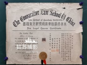 1950年,大尺寸,私立东吴大学毕业证书,贴相片盖钢印。校长,法学院院长。杨永清,盖章。。。(证书完整,但有撕裂,背面宣纸重新托裱。如图。)