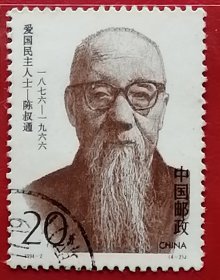 袁袁收藏中国邮票 1994-2 爱国民主人士二组 陈叔通 4-2 信销(1876年8月7日—1966年2月17日)政治活动家,爱国民主人士,1903年进士,翰林。参加维新运动,加入光复会,创办杭州女子学校。辛亥革命后任第一届国会众议院议员。曾参加反对袁世凯的斗争。1941年拒绝日伪逼他任上海维持会会长。1945年同中国共产党发生并保持了密切联系。任中央人民政府委员,人大副委员长,政协全副主席
