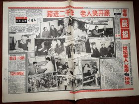老年晨报(跨进二千年)2000年1月4日(吉林),世纪老人长寿有秘诀,蛟河白石山林业局老年秧歌队照片,老红军邹群照片,刘英俊的父亲照片,老首长的保姆们,郑唐国画,七旬老妪只身走天涯,