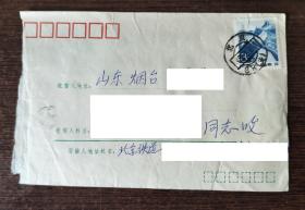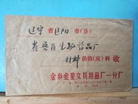 FP12-1392 八十年代 贴普票 企业 实寄封 金乡金星文具用品一分厂 官封 贴 普22 祖国风光 影写版 黄果树瀑布 3分票 浙江苍南实寄辽阳