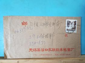 FP13-1403 八十年代 贴普票 企业 实寄封 无锡县荡口农联软木瓶塞厂 官封 贴 普22 祖国风光 影写版 黄果树瀑布 3分票 无锡县实寄辽阳