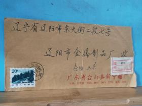 FP22-1048 1982年 贴普票 企业 挂号 实寄封 广东省台山县新宁糖厂 官封 贴普22 祖国风光 影写版 天山风光 20分票 台山县实寄辽阳