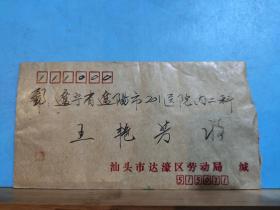 FP11-1007 1992年 贴普票 长城 实寄封 汕头市达濠区劳动局 官封 贴 普22 影写版 长城 8分票2枚 普18 宁祖国风光 海南风光 4分票 汕头实寄辽阳