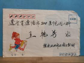 FP13-15367 1992年 贴普票 美术(骑马的小姑娘)实寄封 贴普22 祖国风光 影写版 你很反感 4分票 普23 北京民居 8分票2枚 汕头实寄辽阳