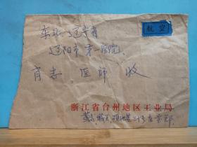 FP21-2511 八十年代 贴普票 航空 实寄封 浙江省台州地区工业局 官封 贴 普18 工农业生产建设 港口 2分票 普22 祖国风光 影写版 长城 8分票 台州地区实寄辽阳