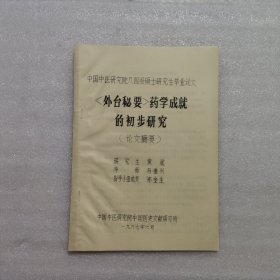 外台秘要 药学成就的初步研究