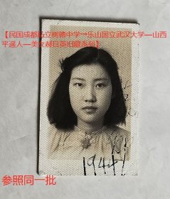 民国老照片:民国成都私立树德中学—美女—费道熙(国立四川大学女高音),赠日英,有背题。【民国成都私立树德中学→乐山国立武汉大学—山西平遥人—美女郝日英旧藏系列】—人物简介:郝日英,大学毕业留学于美国密西根大学。55年跟丈夫席克正回国,先后在华东化工学院(即华东理工大学)、中国科学院上海有机化学研究所工作。父亲郝朴勤是成都春熙路福泰和百货公司、益晋恒的老板。弟弟郝日超,北京石景山钢铁厂工作。