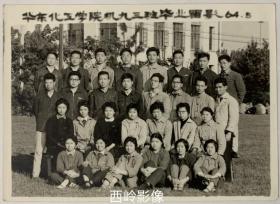 【老照片】1964年5月华东化工学院机九三班毕业留影 (有背题)— 校简史:1952年由交通大学(上海)、震旦大学(上海)、大同大学(上海)、东吴大学(苏州)、江南大学(无锡)等校化工系合并组建而成,是新中国第一所以化工特色闻名的高等学府。1956年被定为全国首批招收研究生的学校之一,1960年起被中共中央确定为教育部直属的全国重点大学,1993年更名为华东理工大学 。