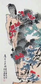 【保真】《鹰石山花图》刘建军,现为中国书法家协会会员,湖南省美术家协会会员,中国工笔画学会会员。