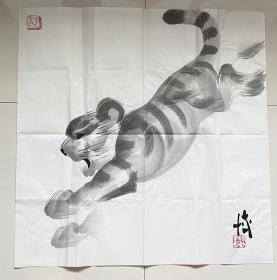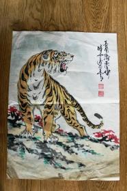 权-希-军旧藏:山西省著名书画家、运城书法家协会副主席 赵千民 壬午年(2002)国画作品《猛虎图》一幅(纸本软片,约4.3平尺,钤印:赵、千民)HXTX416588