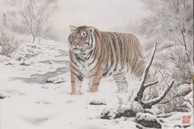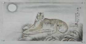 福建省美术家协会副主席、福建人物画艺委会副主任、福建师范大学特聘教授 张永海 2012年作 国画作品《月下猛虎图》一件(纸本软片,约8.5平尺,钤印:张永海)HXTX319356