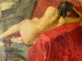 油画家 刘宇 精品小尺幅 老油画《沙发上的女子》22×16cm,收藏品佳。