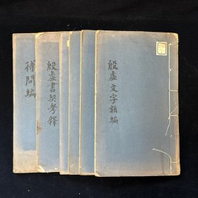 殷墟文字类编十四卷附殷墟文字类编通检、殷墟文字待问编十三卷、殷墟书契考释一卷,白纸张装六册全,罗振玉考释,商承祚编次,民国癸亥年(1923)罗振玉自刻本,此书用长体宋字刻印,极富板刻特色,刷印精致。