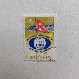 外国邮票 尼泊尔邮票国旗雪山徽志图案酒店协会纪念 信销1枚 如图