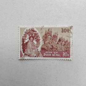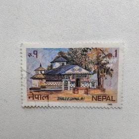 外国邮票 尼泊尔邮票沙伊勒什瓦里神庙建筑 信销1枚 如图.邮戳随机