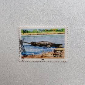外国邮票 尼泊尔邮票野生动物鳄鱼恒河鳄 信销1枚 如图邮戳随机