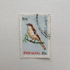外国邮票 尼泊尔邮票动物鸟类北噪鸦 信销1枚 如图邮戳随机